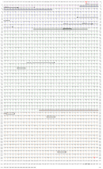 A cDNA fragment was amplified by 3′RACE using the degenerate primers HSTBP-S3F and HSTBP-S3N. These were designated from the amino acid sequence of HSTBP sub-3 as forward primers and AP1 and AP2 as reverse primers (Figure S1). Based on the nucleotide sequence of the PCR product (682 bp), the remaining 5′region sequence was determined by 5′RACE using AP1 and HSTBP-S3R. The PCR product (632 bp) contained a 5′-untranslated region (Figure 3). Next, a cDNA fragment was amplified by 3′RACE using two primer sets: HSTBP-S3F5/AP1 and HSTPB-S3F6/AP1. A PCR product of 1289 bp was obtained, which included the nucleotides encoding 20-amino acids of the N-terminus of HSTBP sub-1. The remaining 3′region was identified by 3′RACE using HSTBP-S1Fk2 and AP1 primers. The 3364 bp PCR product was obtained, which contained 23-amino acid residues of the N-terminus of HSTBP sub-2 and 3′-untranslated region. Here, the nucleotide sequence of the full-length HSTBP cDNA (5391 bp) was determined (accession number LC733238). The accuracy of this sequence was verified using re-cloning experiments. The initial ATG codon is present at nucleotides 91–93. In the 3′-untranslated region, a polyadenylation signal AAT AAA was identified in nucleotides 5341–5346, and a poly(A) tail at nucleotide 5368. An open reading frame (ORF) comprised of 5049 bp, encoding a precursor protein of 1683 amino acid residues from the putative initiating Met1 to the putative last Ser1683 was also identified. The amino acid sequences of the N-terminal proteins of HSTBP sub-1, HSTBP sub-2, and HSTBP sub-3, determined by protein sequencing, were all found at positions 34–58 (HSTBP sub-3), 262–281 (HSTBP sub-1), and 1139–1163 (HSTBP sub-2) of the deduced molecule (Figure 3).