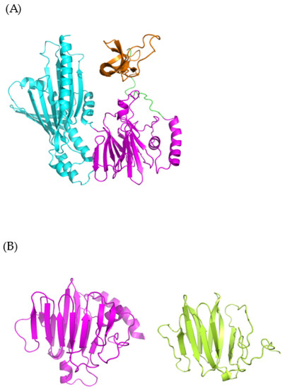 - Letunic, I.; Bork, P. 20 years of the SMART protein domain annotation resource. Nucleic Acids Res. 2018, 46, D493–D496. [Google Scholar] [CrossRef]