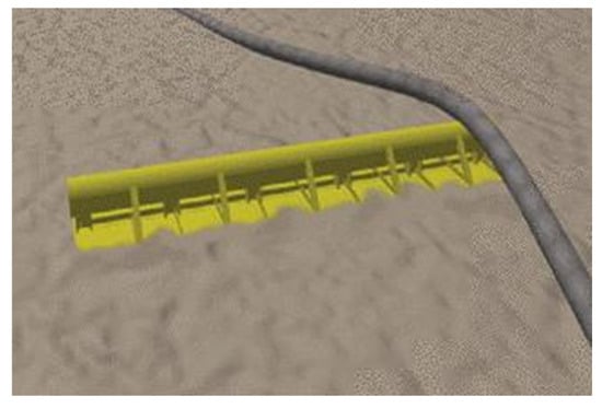 The installation of sleepers (yellow) to control buckling in the pipe structure (black). Reprinted with permission from Ref. [26]. 2018, Elsevier.