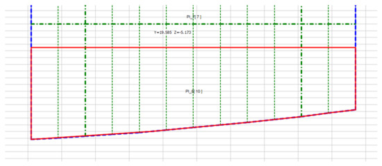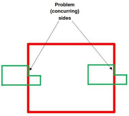In the case of “clipping polygon”, Rogers [13] suggests using the methods of Liang and Barsky [10], and Weiler–Atherton [14], but the author remarks that these methods can work incorrectly in the case of edges conjunction and the appearance of so-called “hanging” edges (see Figure 15). Much the same situation arises when specifying deck plates and outer shell plating (see Figure 16 and Figure 17).