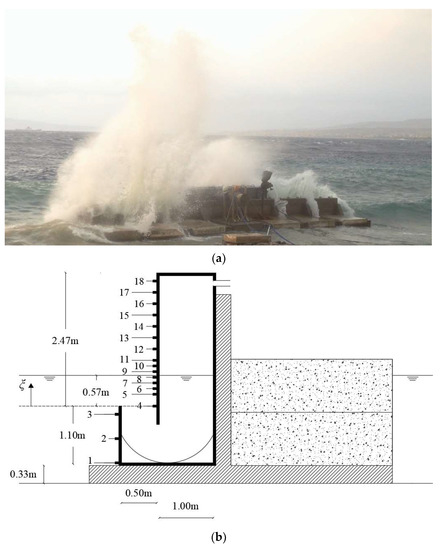 In particular, Goda’s model is applied with reference to the configuration of the U-OWC breakwater tested during the small-scale field experiment campaign arranged at NOEL laboratory (see Figure 1).
