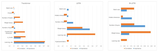 The results show that the BiLSTM and Transformer models, which account for the information along the ship trip to estimate the ship speed at a particular point, are more accurate than the LSTM model, which considers only the past information from the sequence data to produce a prediction at each point. It also appears that for the Transformer model to be efficient, it needs to be deeper than the corresponding LSTM-based architectures. The importance of hyperparameters with respect to the validation error is depicted in Figure 6. This suggests the hyperparameters to consider for a further tuning of the models. Considering the accuracy, the Transformer model seems to be a promising solution that could be further investigated. The results of this study demonstrate the potential of deep learning models to provide a closer estimate of ship speed to the actual values. The proposed model’s performance, however, should be improved by considering more training data, other inputs such as weather information, or a different modeling perspective to consider the spatial interactions of ships.