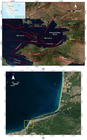 The study area, Psatha bay, lies in the eastern end of the Corinth Gulf, and particularly in the Alkyonides Gulf (Figure 1). The Corinth Gulf is an asymmetric tectonic rift, with a length of 110 km, width of 30 km and maximum depth of 900 m, and is characterized by high seismicity. According to GPS data, the Corinth Gulf extension rates reach 10–15 mm/yr in the central part and 6.4 mm/yr in the eastern part of the gulf [,,].