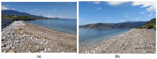 The study area, Psatha bay, lies at the eastern end of Alkyonides Gulf. The most recent large earthquakes in Alkyonides Gulf are those of 1981. The earthquakes resulted in rockfalls, a small tsunami and significant coastal uplift and subsidence [,]. West of Alepochori, subsidence was noted of the order of 0.6 m that flooded up to 50 m of the former coastline []. On the shores of Skinos, several researchers noted subsidence of 0.5–0.8 m, while others report 1.2 m and 1.5 m subsidence [,]. According to Jackson et al. [], residents of the area noted a tsunami with a height of 1 m, during the main earthquake of 1981, which was probably owed to submarine landslides (e.g., []).