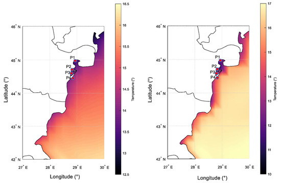 While early floating PV projects were typically located on landlocked bodies of water, such as lakes and reservoirs, organizations have recently begun to consider installing plants on offshore waters. Although this entails far more technical challenges, such as surviving heavy swells and overcoming saltwater corrosion, it also opens up vast new areas for floating PV, potentially in conjunction with aquaculture. To carry out the study, four points of interest were chosen (Table 1), three of which are in the Razim-Sinoie Lagoon Complex and one in the western part of the Black Sea. The location at P4 was chosen to determine whether there are better resources in open water than on the lake; their exact position is also illustrated in Figure 1.