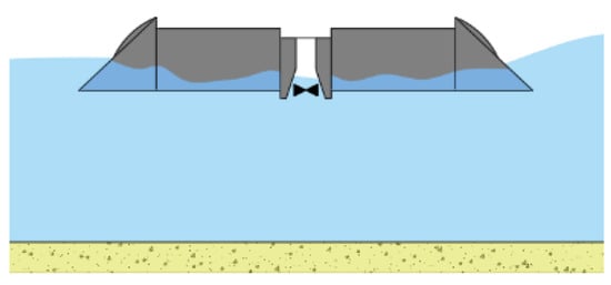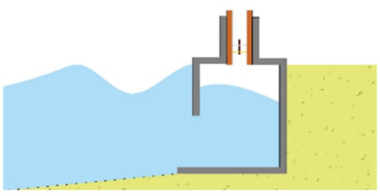 The WEC is used to convert the kinetic and potential energy of waves into electrical energy [31]. WECs can be classified into oscillating body type, oscillating water column type, and overtopping type according to the energy acquisition principle and structure form; the schematic diagram of each type of WEC is shown in Figure 1, Figure 2 and Figure 3.