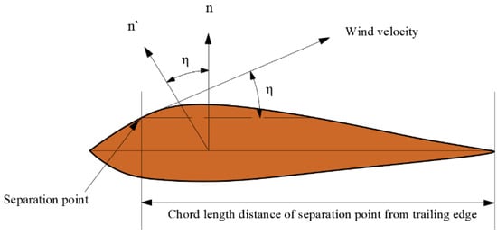 Low-speed unpressurized flow can be properly calculated using the vortex wake technique because it is more accurate than the blade element momentum theory and more efficient than the CFD method [91]. The free vortex wake approach may simulate the phenomena of blade tip vortex roll-up and wake distortion by updating the wake position following the combined velocity at each point of the wake [92]. In addition, because the vortex wake method relies on the theory of incompressible potential flow, the material surface boundary equation predicts that the blade-trailing edge flow will separate under conditions of high wind speed and a large angle of attack, with the separation point appearing hysteresis as a result of the three-dimensional rotation effect [93].