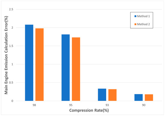 Figure 4, each compression algorithm was chosen for the scenarios of 90%, 94%, and 98% compression rates, while the emission calculation errors were compared horizontally. Because other algorithms have a harder time determining the precise compression rate when choosing the correct threshold, the error of the compression rate was set at within 2%.