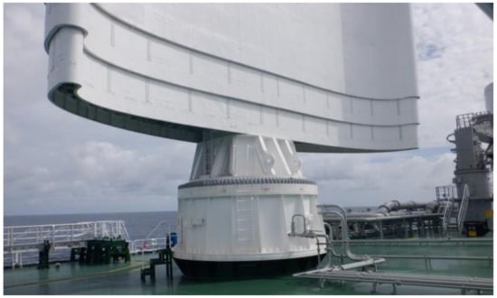 Maritime transportation is one of the most critical ways for global trade [1], ships contribute significantly to world trade but also emit many pollutants. In recent years, the issue of emissions from the shipping industry has received extensive attention. The International Maritime Organization (IMO) pointed out in the fourth greenhouse gas study report that the current annual emissions of greenhouse gases from the shipping industry are about 1076 million tons [2]. It is expected that CO2 emissions will increase by about 50% by 2050 compared with 2018. IMO has issued a series of new regulations for the shipping industry to deal with the increasing shortage of energy and air pollution [3,4], including SEEMP, EEDI, EEXI and CII, which aim to reduce greenhouse gas emissions from the shipping industry [5]. Energy conservation and emission reduction have become the development requirements of the shipping industry [6]. The use of green and clean energy contributes to the sustainable development of the shipping industry [7,8]; the main engine output power can be reduced significantly by utilizing wind power for navigation assistance, as well as ship CO2 emissions [9,10,11]. The most direct and effective way of wind-assisted navigation is sail-assisted technology. The specific forms of sail include airfoil sail (the wing) [12], rotary sail [13,14], kite sail [15], etc. Due to its better aerodynamic characteristics and stability [16], the airfoil sail is one of the most commonly used sails on large ocean-going ships.