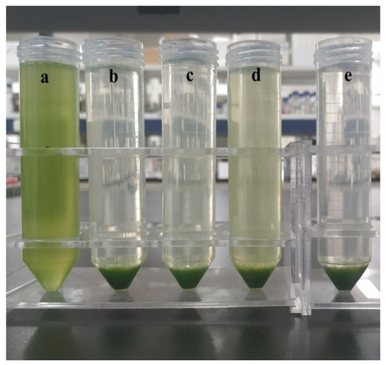 C. vulgaris (FACHB-275) was purchased from Freshwater Algae Culture Collection at the Institute of Hydrobiology (Wuhan, China). The microalgae were preserved and grown in BG11 medium according to Pandey et al. [17]. The initial pH, light intensity, and temperature were maintained at 7.00 ± 0.2, 65 ± 5 μmol/m2.s, and 25 ± 1 °C, respectively. Floc forming pic is shown in Figure 1.