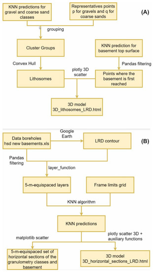 - Bullejos, M.; Cabezas, D.; Martín-Martín, M.; Alcalá, F.J. A K-Nearest Neighbors Algorithm in Python for Visualizing the 3D Stratigraphic Architecture of the Llobregat River Delta in NE Spain. J. Mar. Sci. Eng. 2022, 10, 986. [Google Scholar] [CrossRef]