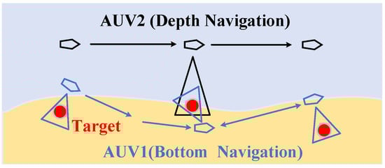 As shown in Figure 2, the depth of AUV is . A certain safe distance must be kept between AUV and the bottom to ensure safety. An evident deficiency is observed in the related work. In applications requiring near-bottom navigation, the abovementioned strategies cannot meet the requirements of lateral safety trajectory. For example, as shown in Figure 2, the horizontal safety distance of AUV is evidently smaller than the vertical safety distance . Therefore, considering the vertical safety distance is insufficient.