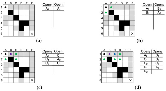 Step 4. returns all subsequent states of the extended state s and updates the subsequent states in accordance with the rules. The updated rules of are the same as those of ordinary A* algorithm, and is updated in accordance with the condition of satisfying the descending order of , which must satisfy .