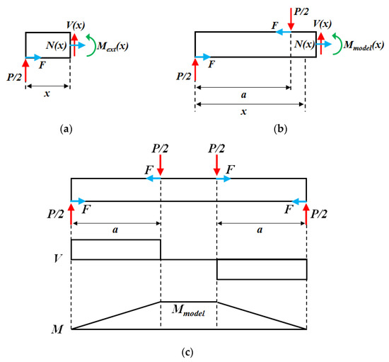 When the frictional forces are neglected, the bending moment ( M m o d e l ) applied to the model can be calculated using Equation (5):