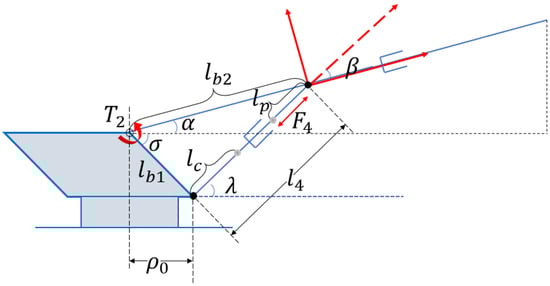 According to the geometric relationship in Figure 4, the pitching motor’s tractive force can be obtained by: