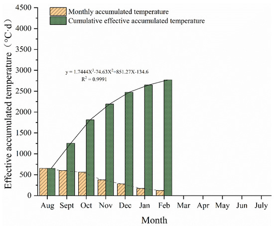 Monthly variation in effective accumulated temperature.
