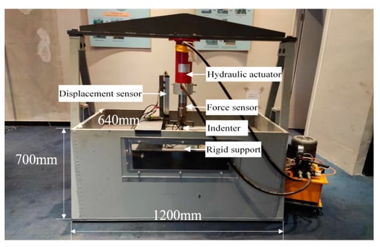 Experimental tests were performed to evaluate the relationship between lateral load and the indentation of PIP specimens under rigid support conditions, which were carried out on a test device, as shown in Figure 1. A hydraulic actuator with a capacity of 10 tons was employed to create a dent defect on the PIP specimen, and the displacement and load signal data during the complete loading process were recorded using dynamic signal acquisition instrumentation.