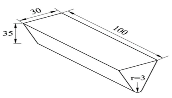 In this study, 10 PIP specimens of different sizes were used in the experimental tests. The PIP specimens consisted of three components, including the outer pipe (L245 seamless steel), the inner pipe (L245 seamless steel), and the centralizer (L450 seamless steel), as shown in Figure 2; the thermal insulation layer and protective layer were not considered in this study. Considering the actual service status of the submarine pipeline, the inner pipe was centered without axial restraint by adopting the centralizer [29] with a length of 20mm at each end of the PIP specimen (as shown in Figure 3). The complete set of mechanical properties and nominal geometries of the PIP specimens is summarized in Table 1 and Table 2, respectively. The PIP specimens were laterally dented using an ideally rigid wedge-shaped indenter [30] which was made of L450 seamless steel (as shown in Figure 4), considering the wedge-shaped indenter is similar in shape to the front end of a trawler plate or anchor, which are major sources of external loads on pipelines.