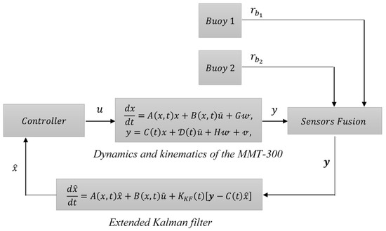 In this work, it will be acceptable to use two buoys on the surface to provide the positioning of the submersible when complexing information with inertial navigation sensors (INSs/IMUs), a Doppler velocity logger (DVL), and a pressure sensor (PS). It is assumed that the buoys do not provide bearing angle data.