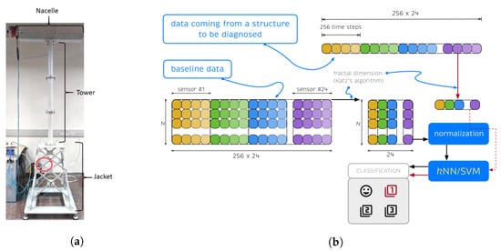 - Hoxha, E.; Vidal, Y.; Pozo, F. Damage diagnosis for offshore wind turbine foundations based on the fractal dimension. Appl. Sci. 2020, 10, 6972. [Google Scholar] [CrossRef]