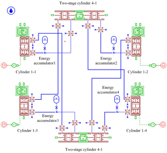 Hydraulic interconnected suspension system model.