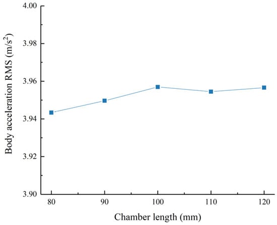Acceleration RMS value as a function of the chamber length.