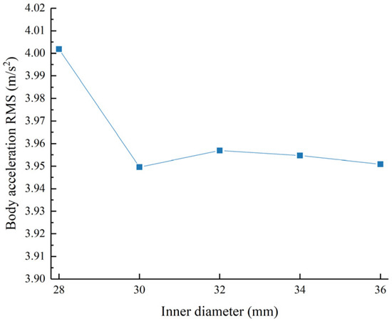 Acceleration RMS value as a function of the hydraulic cylinder inner diameter.