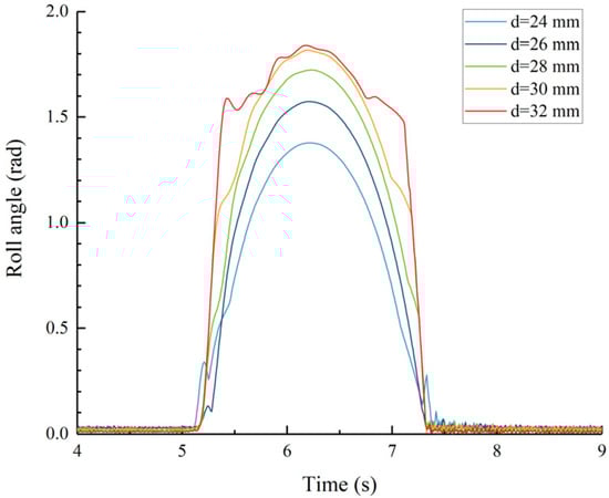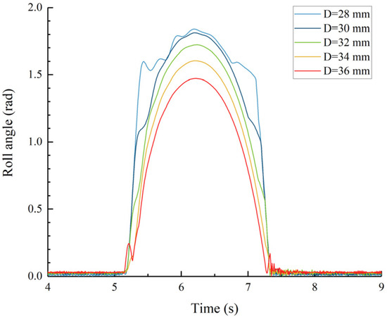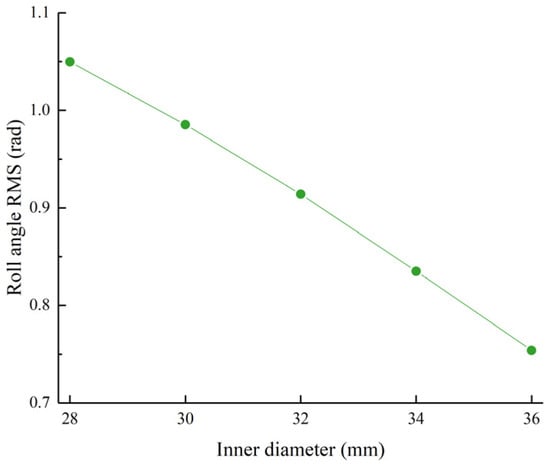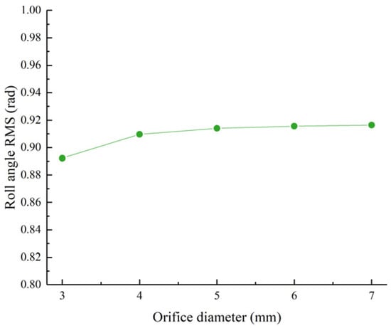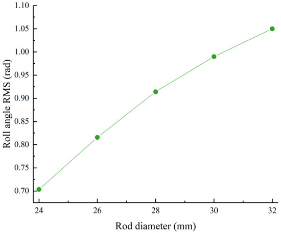 Roll angle RMS value as a function of the piston rod diameter.