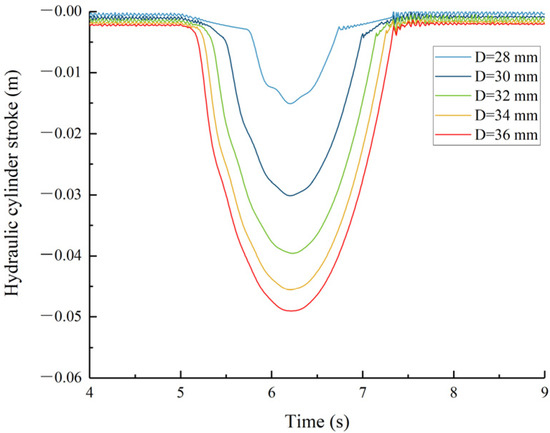 | Symmetric Hydraulic Cylinder Inner Diameter/D0 (mm) | Peak Heave Displacement of the Main Hull (mm) | Peak Heave Velocity of the Main Hull (m/s) |