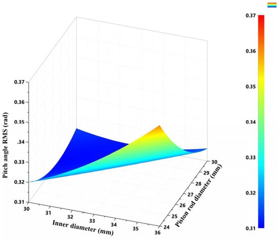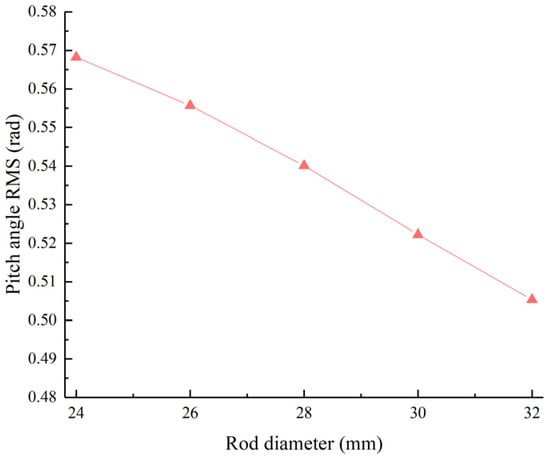 Pitch angle RMS value as a function of the piston rod diameter.