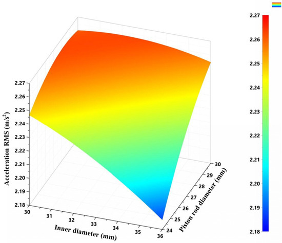 Acceleration RMS value as a function of the inner diameter and the piston rod diameter.