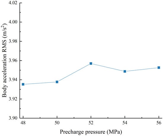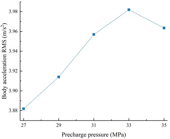 Acceleration RMS value as a function of the right accumulator pre-charge pressure.