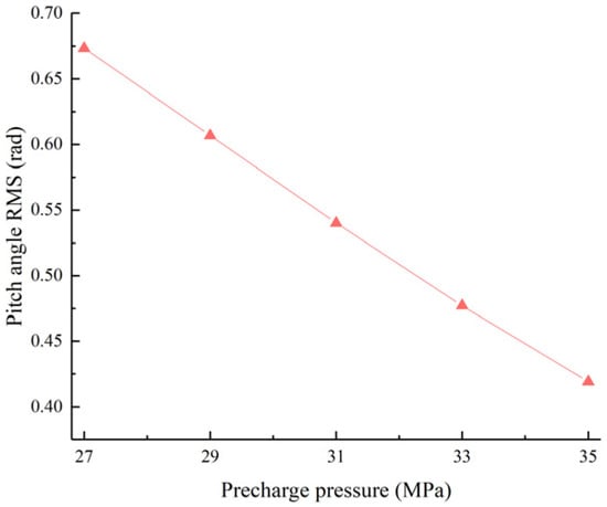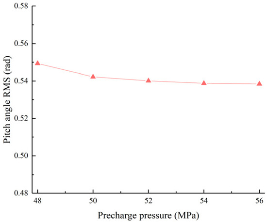 Pitch angle RMS value as a function of the right accumulator pre-charge pressure.