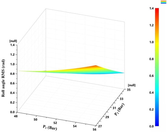 Roll angle RMS value as a function of the left and right accumulator pre-charge pressures.