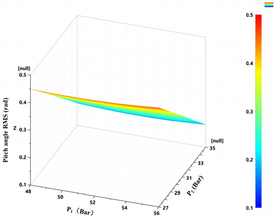 Pitch angle RMS value as a function of the left and right accumulator pre-charge pressures.