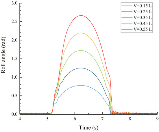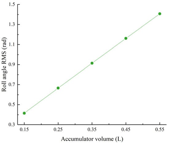 Roll angle RMS value as a function of the accumulator volume.