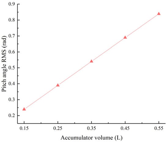 Pitch angle RMS value as a function of the accumulator volume.