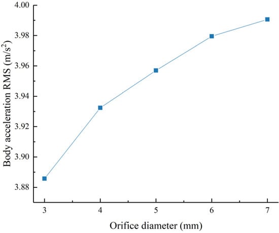 Acceleration RMS value as a function of the damping valve aperture size.