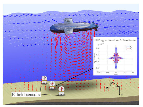 - Broecheler, C.; Thiel, C.; Rennings, A.; Ludwar, F.; Doose, J.; Erni, D. Frequency Dependent UEP Signatures of Naval Vessels Modeled by a Current Dipole. In Proceedings of the COMSOL-Conference-2018, Lousanne, Switzerland, 8 November 2018. [Google Scholar]