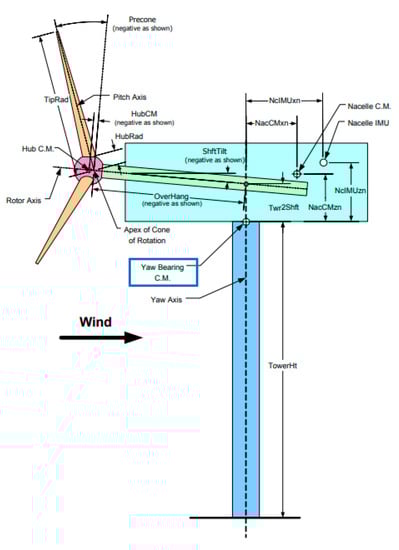 - Jonkman, J.; Butterfield, S.; Musial, W.; Scott, G. Definition of a 5-MW Reference Wind Turbine for Offshore System Development (No. NREL/TP-500-38060); National Renewable Energy Laboratory (NREL): Golden, CO, USA, 2009.