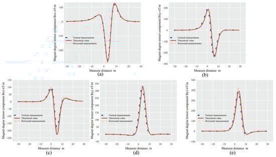 In order to verify the accuracy of magnetic gradient tensor measurements for both structures, root mean square error () was employed to assess the measurement results of the five tensors.
