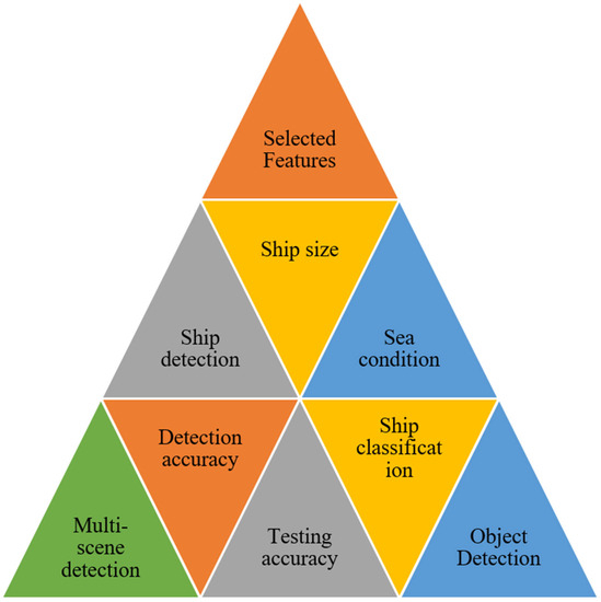 One of the selected studies is by Kang et al. [45], who proposed a unique object detection architecture named Sarod that utilizes SAR images and reinforcement learning to achieve both accuracy and efficiency. The system uses coarse and fine-grained detectors and was evaluated using the synthetic aperture radar dataset, showing better performance than existing approaches. The study also developed a SAR dataset of Chinese Gaofen-3 and Sentinel-1 images, which demonstrated that object detectors can achieve high mean average precision without the need for land–ocean segmentation.