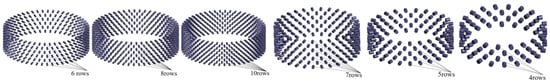 - Next, the diameter of the spray hole is maintained unchanged, and the impact of total spray area on the gas–steam ejection flow field and launch tube ballistic parameters is studied. The change in total spray area is adjusted by the number of spray holes.