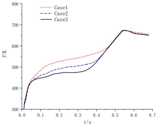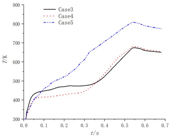 Temperature contour of cases 3, 4, and 5 at 0.1 s.