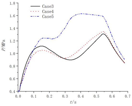 Figure 39. Pressure contour of cases 3, 4, and 5 at 0.1 s.