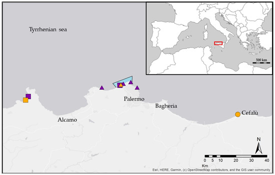 The habitat fragmentation process leads a habitat from a pristine and continuous status to a habitat reduced to a number of smaller patches [5]. One of the constraints to the study of the process of HF is that it normally occurs over a broad time scale [1], making it difficult to follow. Therefore, we tend to compare geographically different sites characterised by the same habitat but with different fragmentation levels. Such an approach can lead to misinterpretation. In fact, Fahrig [1] suggested that the study of HF should always take into account the full landscape supporting the habitat in question trying to avoid wrong conclusions in terms of putative impacts on associated biodiversity. This study was carried out along the northern coast of Sicily, which was explored during pre-surveys in order to identify the most suitable experimental sites among those available (Figure 1).