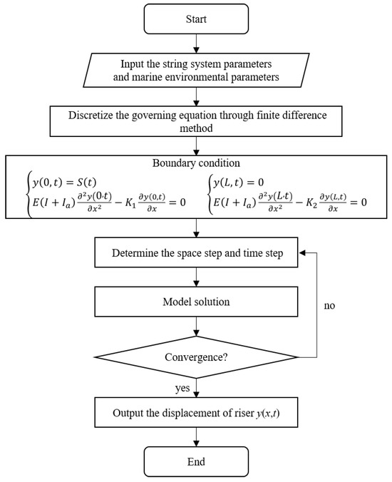 Based on the above assumptions, the mechanical model of the riser is established based on the principles of elasticity. In the governing Equation (1), the elastic modulus does not vary with the length of the riser, and the mechanical model established in this article is in a two-dimensional plane. The governing equation of the riser can be expressed as [58]: