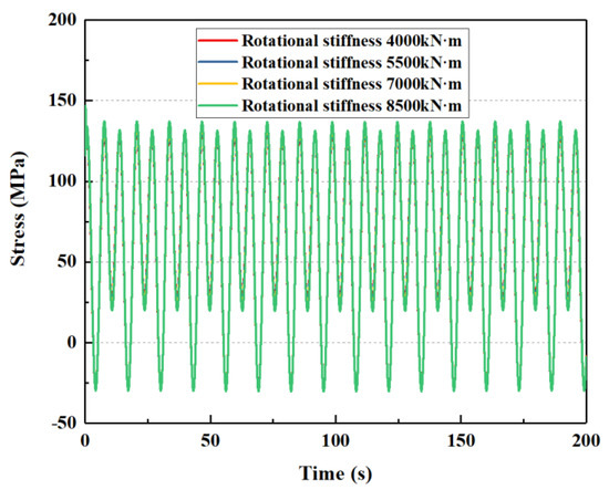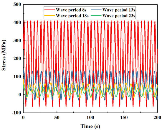 The model validation has been carried out through comparing the results obtained by the method proposed in this paper and the numerical simulation in Orcaflex. In order to make the comparison results more intuitive, in the process of model verification, the bending moment and stress of the first half of the platform drift period have been chosen. The comparison results are shown in Figure 5 and Figure 6.