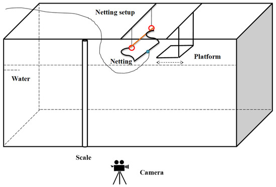 Schematic diagram of experimental apparatus for the experimental depth measurements of netting panels.