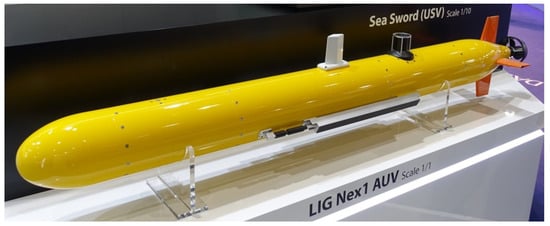 Mock-up of LIG Nex1 AUV (FLS sonar is installed in front head in real AUV).